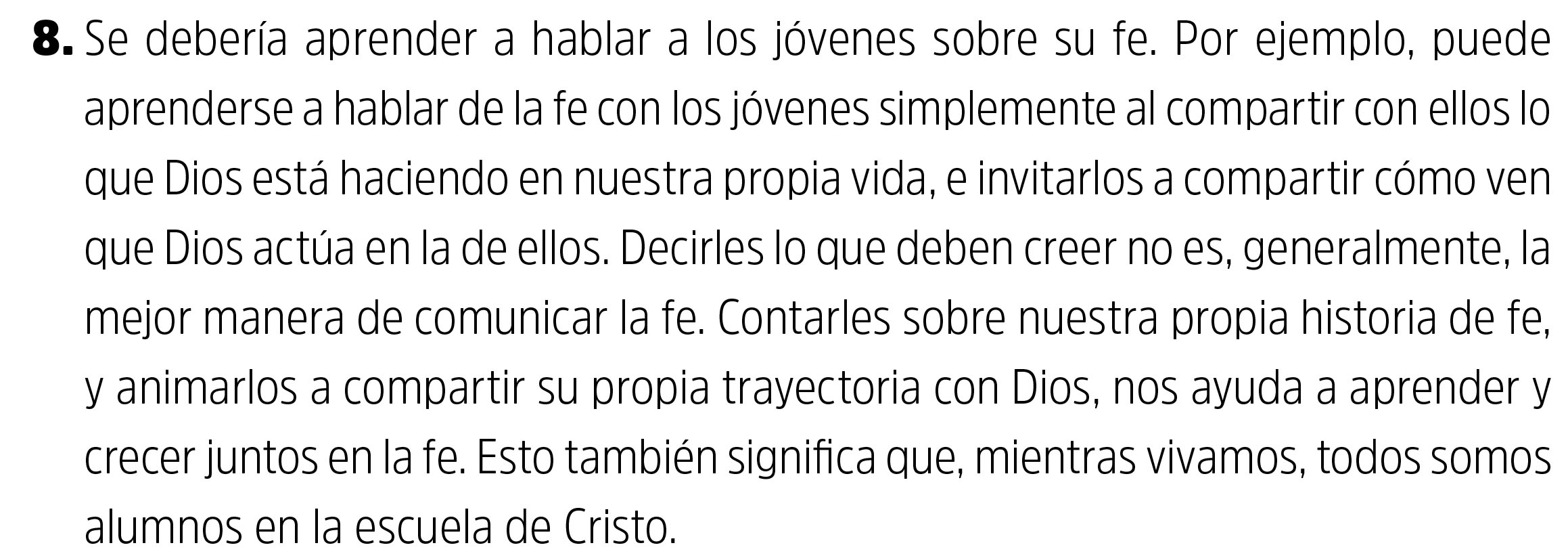 Crear entornos en los que los jóvenes puedan vivir la experiencia de una iglesia como lugar para un encuentro afectuoso con Dios y el prójimo. El entorno es fundamental.